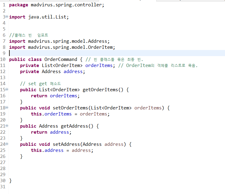 OrderItem목록을 갖는 List 타입의 orderItem 프로퍼티를 갖게 만들고.