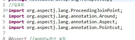 @Aspect 어노텐션을 이용할 경우 XML 설정 파일에서 Pointcut을 설정하는 것이아닌 import 를통해 사용한다.