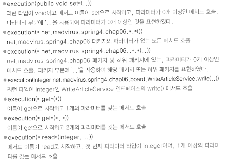 <aop:pointcut id="publicMethod" expression="execution(public * chap..*(..))"/> <!-- chap에 있는 모든 하위폴더 -->